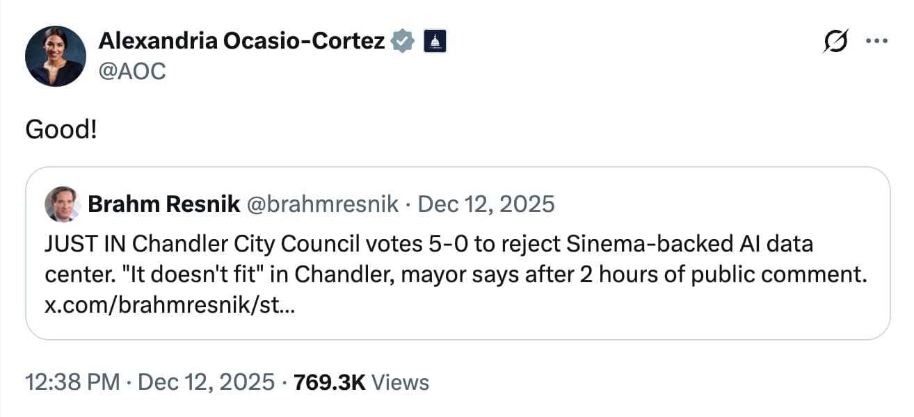 Sinema later railed against the left for killing the project while praising the Trump administration for backing AI data centers.