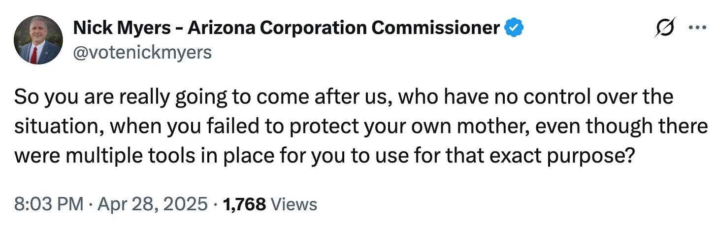 Check out this Twitter thread from Republican Corporation Commissioner Nick Myers.