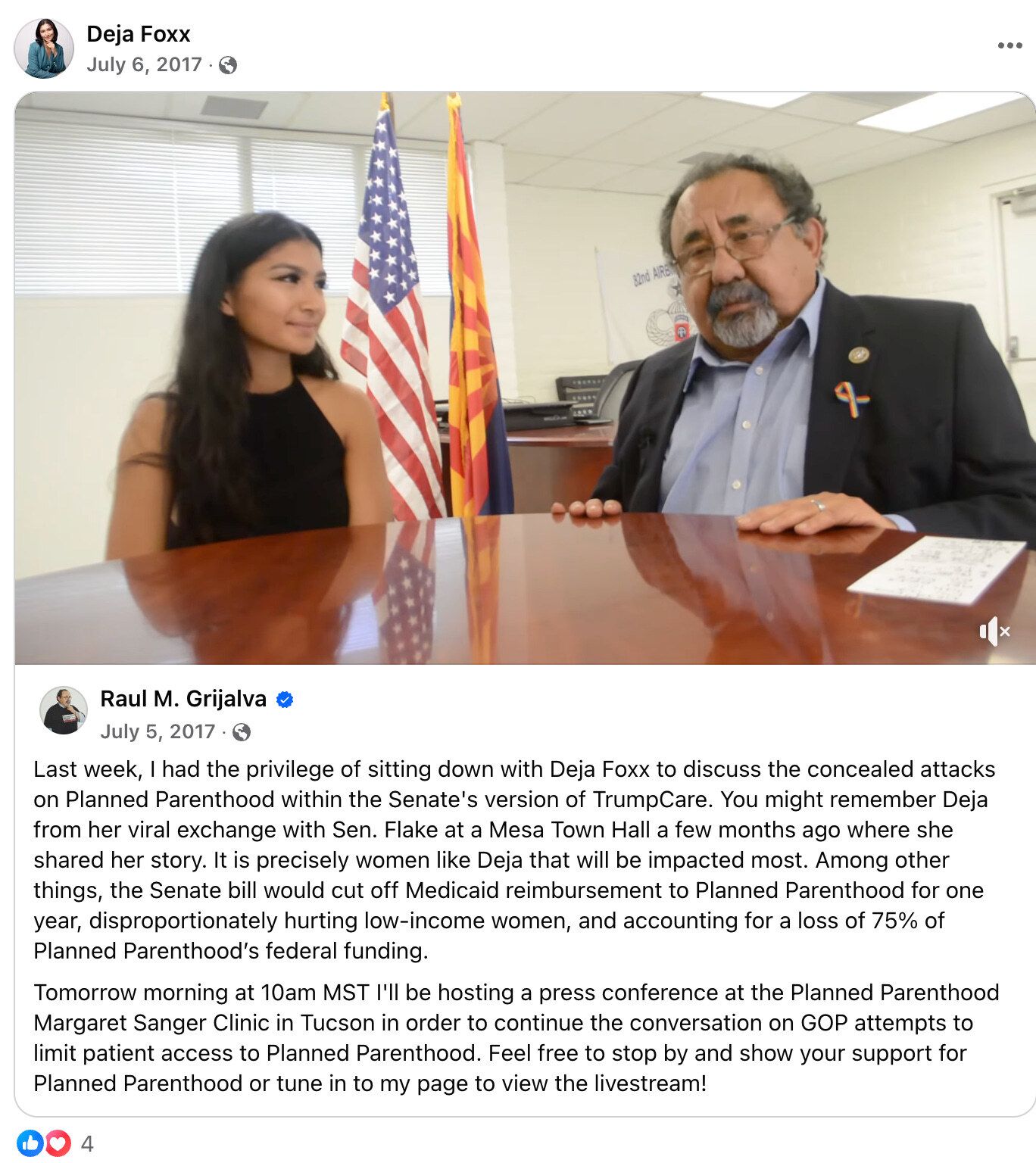 Foxx became a progressive social media star at age 16 when she confronted former Republican U.S. Sen. Jeff Flake about his vote to cut funding for Planned Parenthood.