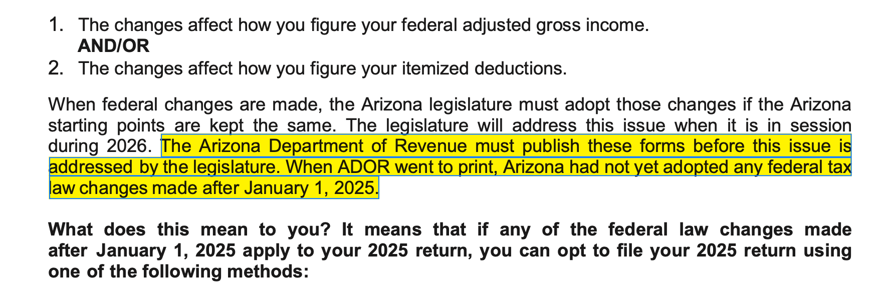 “The taxpayers of Arizona are screwed, because the due date for their tax filings will happen before they even know what the rules are,” he said.