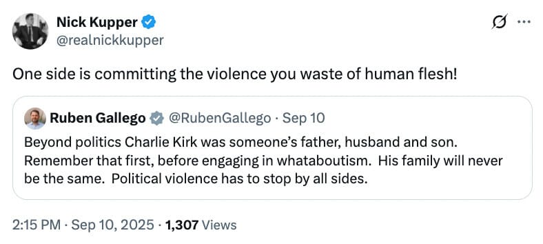 Republican Rep. Nick Kupper called Sen. Ruben Gallego a “waste of human flesh” for declaring that “political violence has to stop by all sides.”