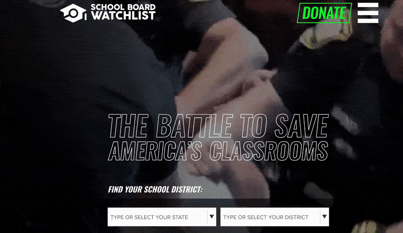 The website for its School Board Watchlist features the words “The Battle To Save America’s Classrooms” scrawled over clips of people fighting with police, shouting down school board members and getting arrested at school board meetings.