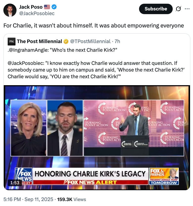 But they’re not Charlie Kirk. Neither one has built more than a decade of trust and respect with Kirk’s audience and contacts.