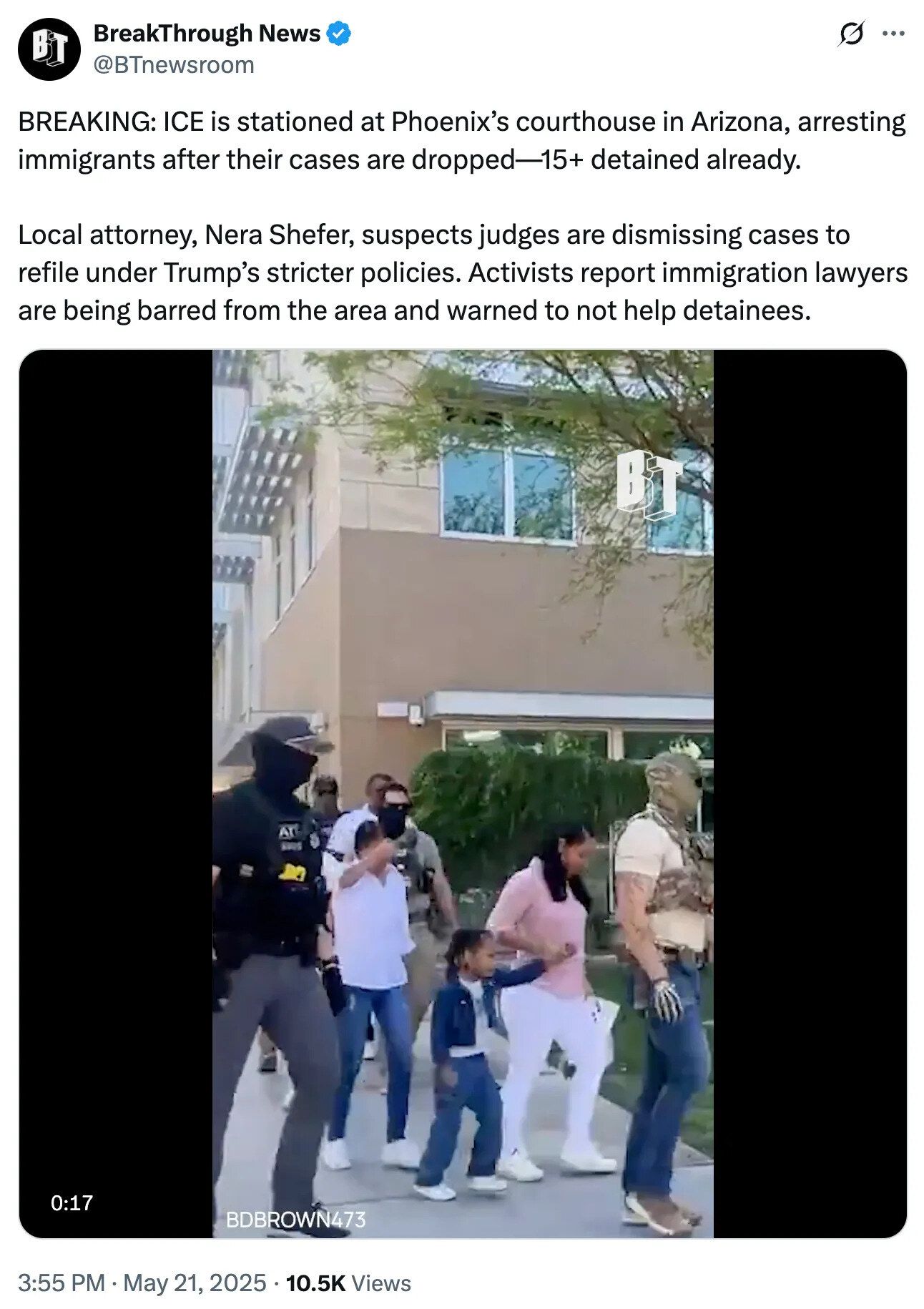 Federal agents wearing face coverings arrested immigrants outside of courtrooms in Phoenix yesterday for the second day in a row.