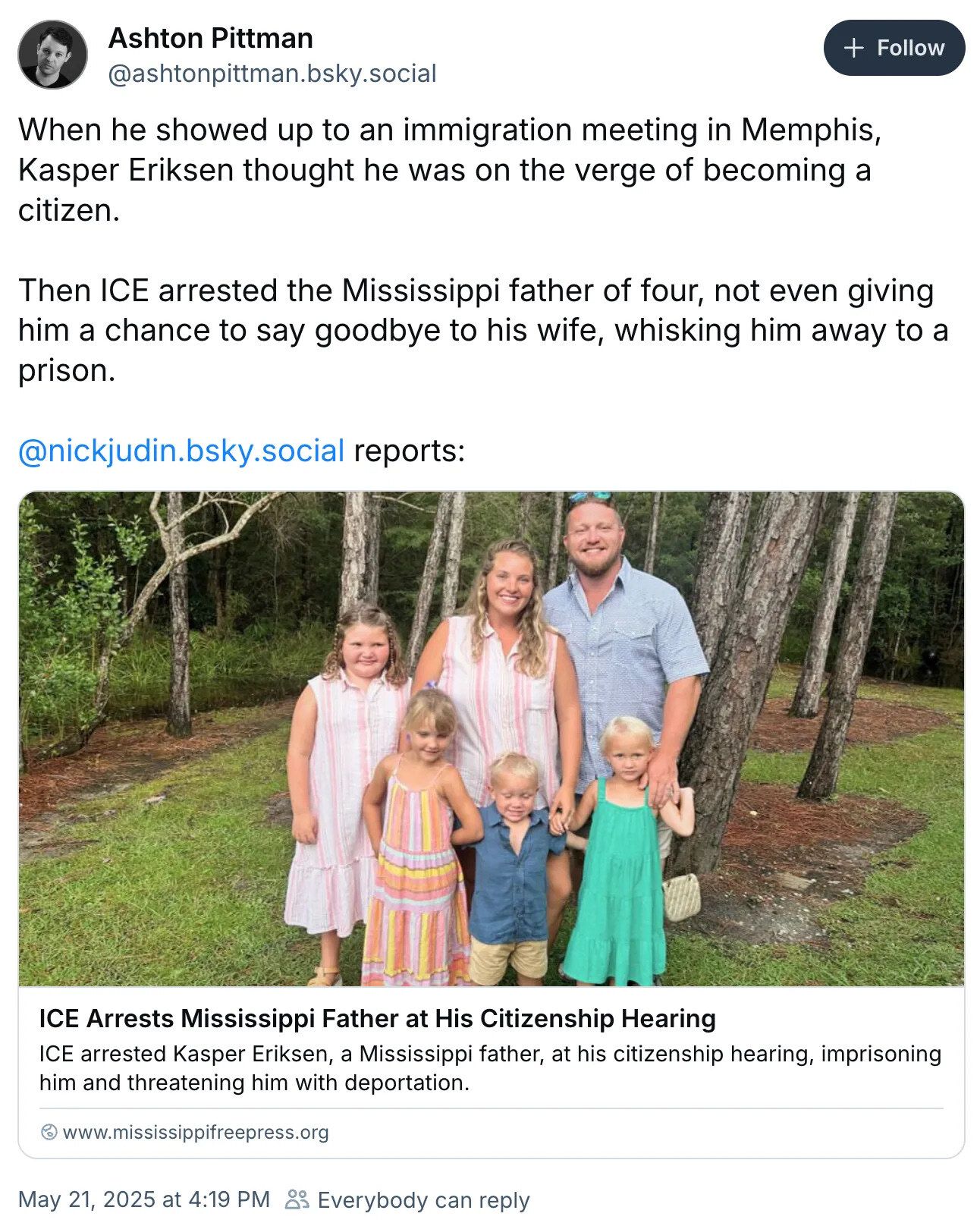 Democratic state Rep. Analise Ortiz was at the courthouse yesterday, using her journalist background and sizable online following to document ICE’s actions and help drum up support for the migrants. She and Democratic state Sen. Catherine Miranda sat in on some of the hearings, confirming that some of those detained were asylum seekers.